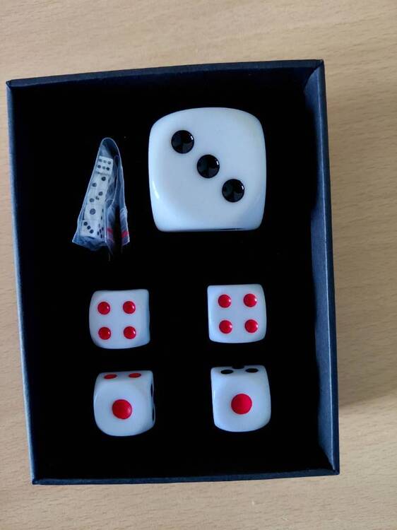 Le point culminant classique de Dai Vernon pour une routine de dés, publié dans The Dai Vernon Book of Magic, est une routine de dés passionnante avec un point culminant surprenant. Dai Vernon, le professeur, a exécuté cette routine pour sa majesté, la reine Louise de Suède, ce qui l’a beaucoup amusée et l’a fait répéter à la demande de la royauté. Vous recevrez tous les dés nécessaires à l’exécution de cette routine, ce qui vous évitera de chercher des dés de tailles différentes. Avec cet ensemble de dés, vous pouvez exécuter confortablement cet effet classique et donner les dés au public comme souvenirs après le spectacle. Le set comprend : Dés ordinaires ×4 Mini dés ×10 Gros dés ×1 15,00 euros Frais de port inclus envoi par la Poste avec suivi . Paiement Paypal -