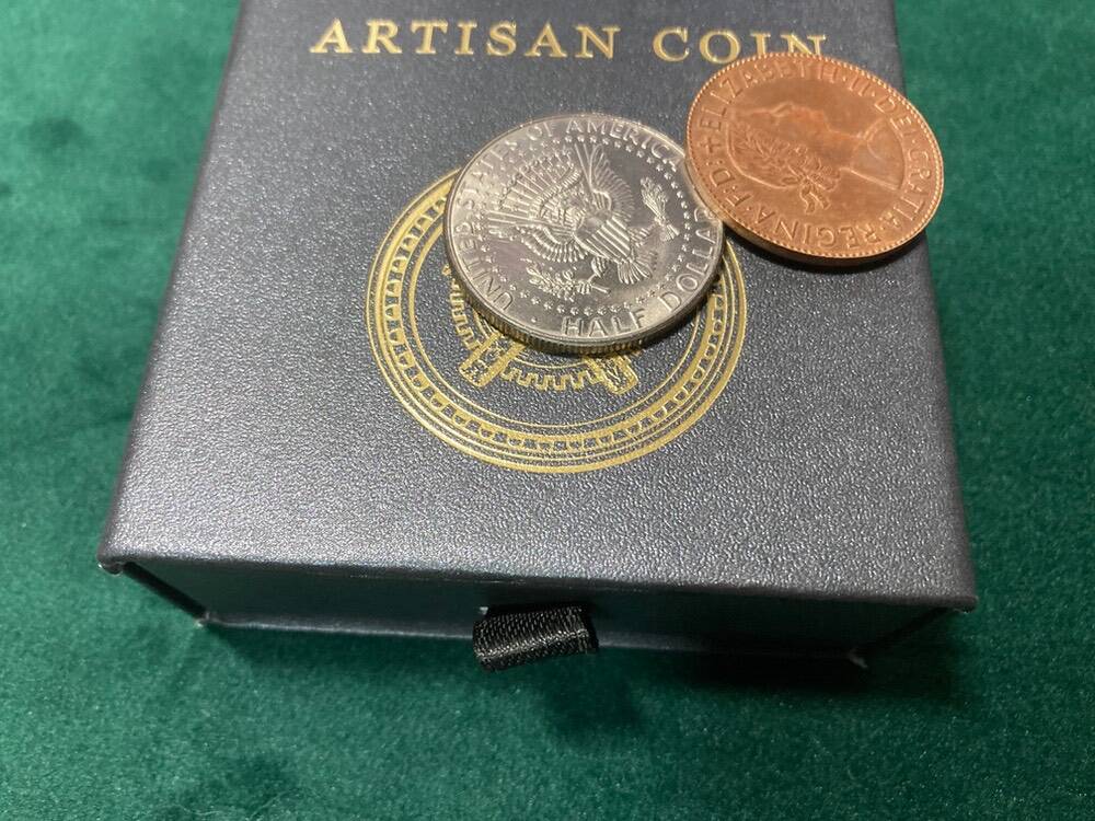 55 € PORT SUIVI COMPRIS MONDIAL RELAY( France ) 100% NEUF ( jamais utilisé - j’ai un autre set en Liberty que je lui préfère ) Paiement PayPal / Pas d’échange Autrefois incontournable dans l’arsenal de tout magicien de pièces, l’effet Scotch & Soda a peu à peu été éclipsé par des innovations plus récentes. Pourtant, son charme intemporel continue de séduire, en particulier les magiciens expérimentés. Un effet puissant et entièrement automatique ➡ Le Scotch & Soda a traversé les années principalement grâce à son fonctionnement self-working (quasi automatique). Dans la routine classique présentée dans la vidéo, le magicien remet simplement les pièces au spectateur, qui prend alors le contrôle total de l’effet — y compris le moment magique lui-même. Le miracle se produit entièrement dans les mains du spectateur, ce qui le rend encore plus percutant. ➡ Aujourd’hui, Artisan Coin redonne vie à ce grand classique grâce à une amélioration magnétique moderne, offrant une manipulation plus rapide, une exécution plus fluide et une polyvalence accrue. ➡ Caractéristiques : • Mécanisme magnétique avec réinitialisation instantanée Plus besoin d’anneaux « bang » en cuivre ni de réinitialisations maladroites. Remise à zéro en seulement 1 seconde, de manière silencieuse et invisible. ( et pas besoin d’aimant ) • Gimmick à verrouillage automatique Conçu avec une précision extrême pour se verrouiller automatiquement et rester parfaitement en place jusqu’au moment où vous décidez de le libérer. • Aspect et sensation ultra réalistes Fabriqué pour se fondre parfaitement parmi de vraies pièces, idéal pour la magie de proximité. • Penny aminci inclus Offre une plus grande polyvalence pour différents styles de présentation et routines. ➡ Contenu : • 1 × Coquille gimmick HD • 1 × Pièce gimmick cuivre/argent • 1 × Penny assorti (aminci) • Boite de rangement
