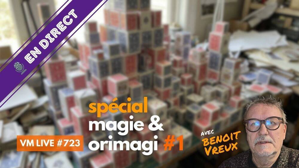 Ce mercredi soir @Benoit VREUX vous apprend à transformer un jeu de cartes… en véritables objets magiques Et si un simple jeu de cartes devenait bien plus qu’un support de tours ? Ce mercredi en live, Virtual Magie vous propose une rencontre aussi originale qu’inspirante autour de la magie et de l’origami, en compagnie de Benoit VREUX. Au programme : plier, assembler, créer… sans jamais découper ni coller, pour donner naissance à des objets visuels, poétiques et exploitables en magie. Une approche créative, écologique et profondément magique, où chaque carte se transforme sous vos yeux. Benoît partagera sa philosophie, ses techniques, ses astuces de terrain et surtout des idées concrètes pour intégrer ces créations dans vos routines. Une philosophie créative et magique « Rien ne se perd, tout se transforme. » La soirée débutera par une réflexion sur la transformation, la contrainte créative et l’art d’exploiter l’existant. Ici, pas de colle, pas de ciseaux : uniquement des cartes, des plis et de l’ingéniosité. Techniques de base : construire avec des cartes Vous apprendrez : Le pliage fondamental permettant de créer une tuile Les caractéristiques essentielles de ces tuiles : Recto / verso Orientation Typologies possibles Les règles d’assemblage pour des constructions solides et élégantes Des figures de plus en plus spectaculaires À partir de cette base, Benoît vous guidera dans la création de nombreuses structures : Cubes (petits et grands) Boîtes et paniers Maisons et crèches Murs, tours et châteaux Sapins en cartes à jouer Les tips de pro Benoît partagera aussi ses astuces de terrain : Quand (et comment) utiliser règles, cutters ou colle Marqueurs blancs, cartes 2 et 4, et autres subtilités Comment renforcer la lisibilité et l’impact visuel Idées magiques et applications concrètes Place à la magie ! Vous découvrirez comment intégrer ces créations dans vos routines avec : Une boîte à prédiction Un tapis de jeu original Le Carré de Saturne Des tuiles aimantées pour des effets impossibles Grand final : le village de Noël sous la neige Pour conclure le live en beauté, Benoît réalisera une construction complète et poétique : un véritable village de Noël en cartes à jouer, sous la neige… Un final visuel, inspirant et riche en idées pour vos propres créations. Informations pratiques Quand ? mercredi 17 décembre 2025 Où ? Zoom Horaires ? à partir de 18h30 Tarif ? gratuit En direct dès 18h30 sur Zoom Rejoins-nous ici : https://virtualmagie.com/vmlive -