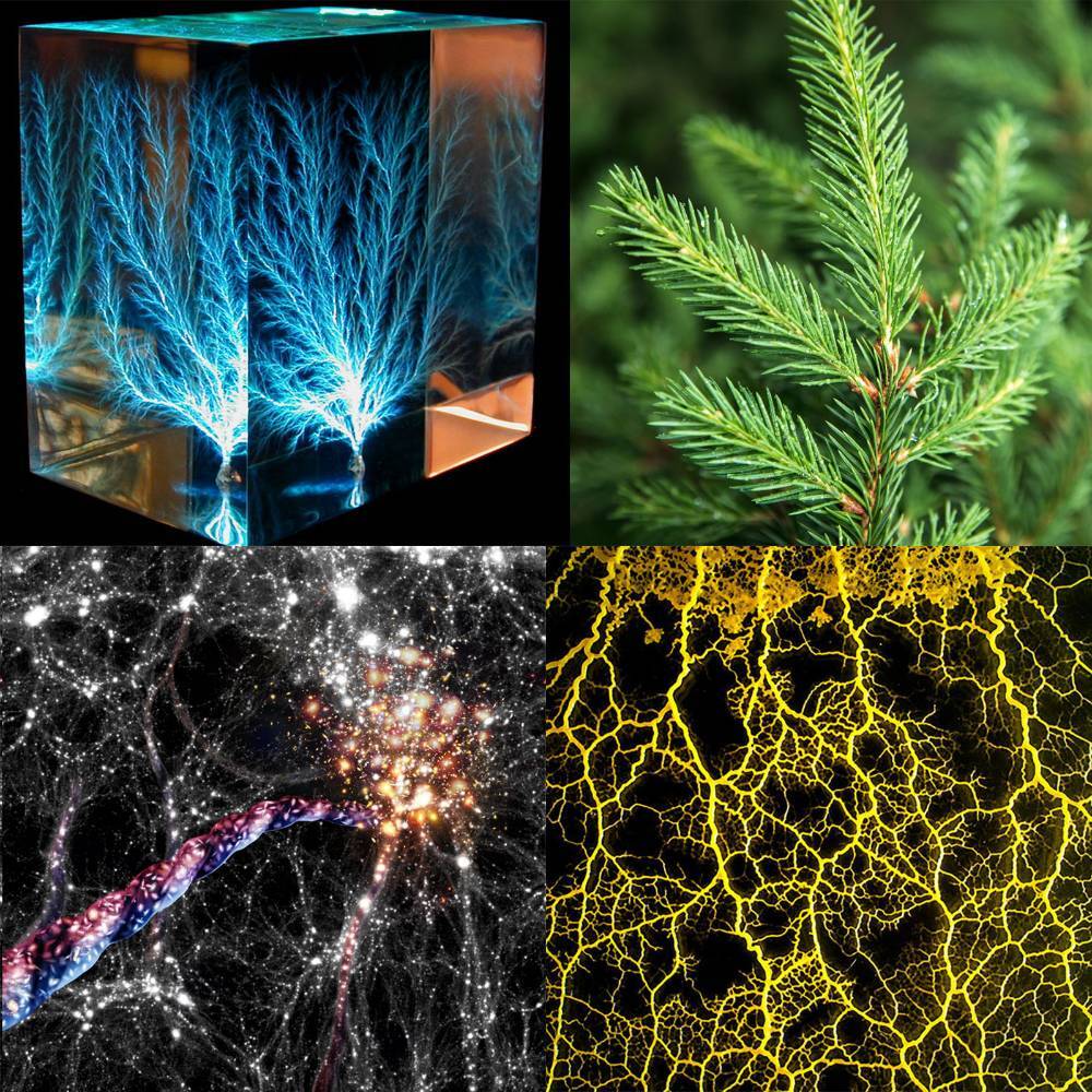 C'est très jôli ! Y a un truc qui m'intrigue, c'est la progression de cette structure de son point de départ à sa limite de développement / de progression. C'est commun à beaucoup de "progressions" que l'on trouve dans la nature je trouve... Éclairs. Arbres, feuilles, plantes, cours d'eau... Formation des galaxies, des structures supermassives, des amas de galaxies... Progression des blobs, des racines, des mousses... Et même quand on le construit soi-même comme les réseaux ferroviaires ou les plans des métros. Quelques exemples que je trouve visuellement parlants : -