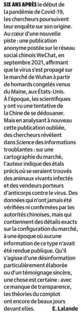 Homard m'a tuer ? https://www.science.org/content/article/scienceadviser-covid-19-origin-clues-buried-ludicrous-lobster-theory