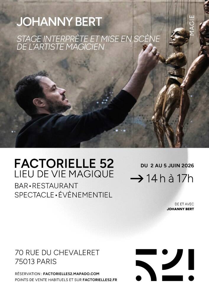 Bonjour à tous ! Après le succès du stage animé par @pere_alexandre , nous vous proposons un stage avec Johanny Bert ! Cette formation s’appuie sur vous en tant qu’artiste magicienne/magicien et vous propose de développer votre jeu d’interprète. Que vous cherchiez un rapport très réaliste et concret à la magie ou que vous ayez créer un personnage et son univers, ce temps de recherche nous permettra de questionner le jeu, le corps, la voix, la dramaturgie, le rapport à l’écriture et à l’improvisation. Dans une démarche bienveillante, cet espace de travail en petit groupe est imaginé comme une bulle, protégée du jugement extérieur pour tester le rapport entre l’interprète et différents actes magiques. A travers des exercices mêlant jeu et magie, nous alternerons entre des tentatives ludiques et détaillées et des temps de recherche sur votre propre projet. La formation s’adresse à des magiciennes et magiciens qui ont déjà une technique sérieuse de la magie. Nous nous appuierons sur vos tours, vos routines. Chacune et chacun doit venir avec un numéro en cours d’écriture ou un personnage qu’iel souhaite développer à travers un numéro ou un spectacle. Une petit bio de Johanny Bert pour ceux qui ne le connaissent pas : Comédien, metteur en scène, créateur hybride à étudié la magie et utilise parfois dans ses spectacles cette technique au service d’une dramaturgie. Ses créations mêlent objets, matières et interprètes et jouent en France et à l’étranger. (Hen-cabaret dégenré, La nouvelle Ronde, le Processus, Cabaret Love, Le Petit bain). Il met en scène pour sa Cie le théâtre de Romette et lors de propositions pour d’autres équipes artistiques : L’Opéra de Strasbourg pour La Flûte Enchantée ou dernièrement avec Le théâtre de l’Atelier à Paris où il à dirigé Vincent Dedienne dans Il ne m’est jamais rien arrivé qui à joué à guichet fermé et en tournée. Dates : du 2 au 5 Juin 2026 de 14h à 17h + plateau disponible le matin pour préparer les exercices de 11H à 13h N'hésitez pas si vous avez des questions ! Mael