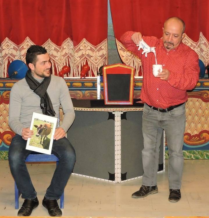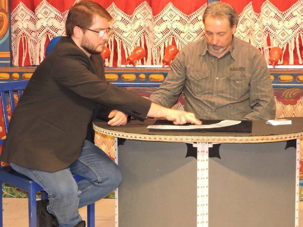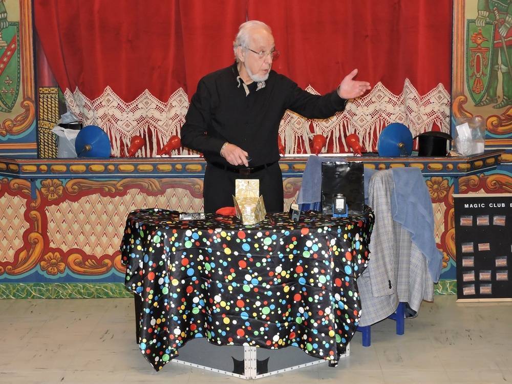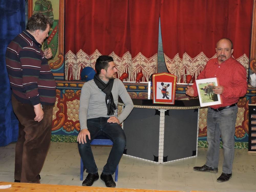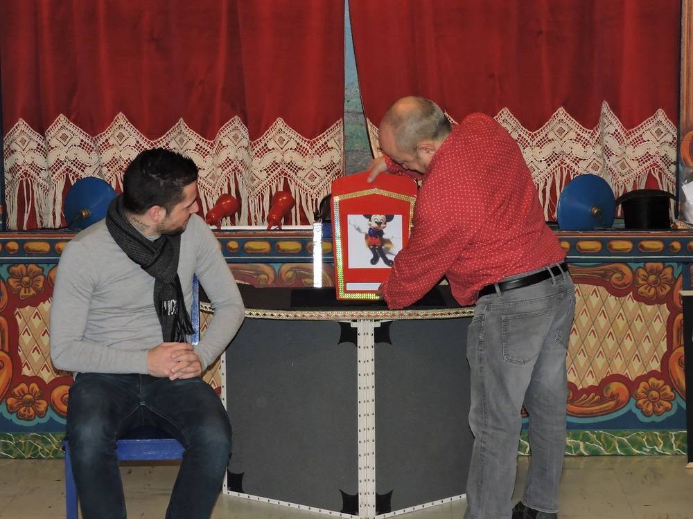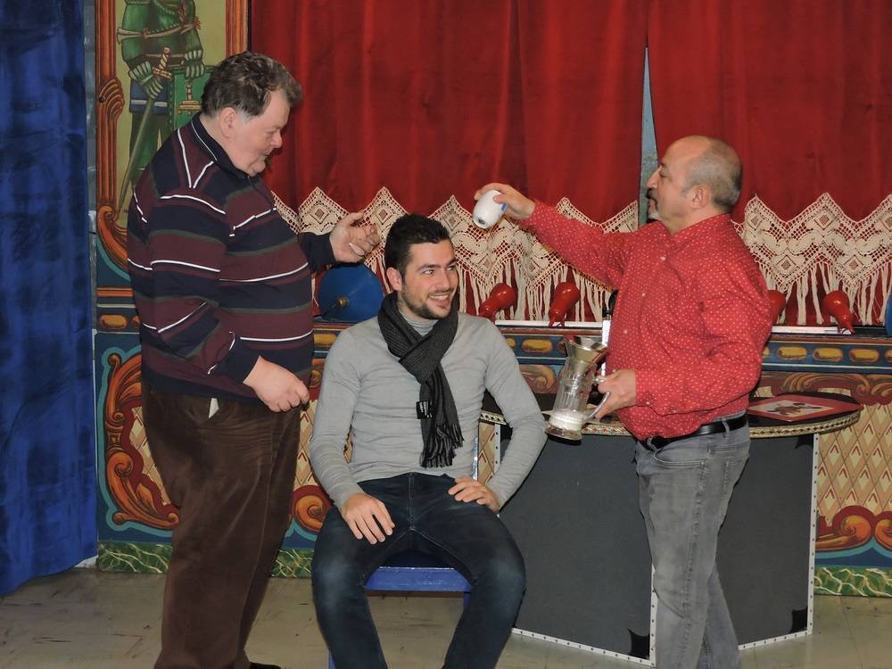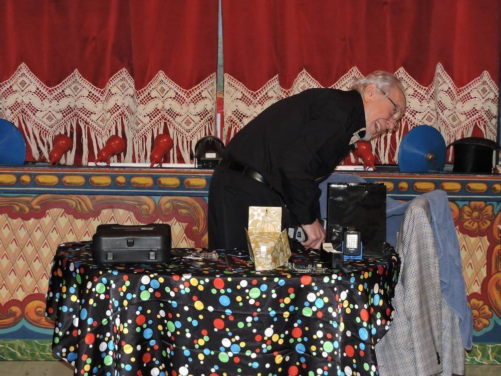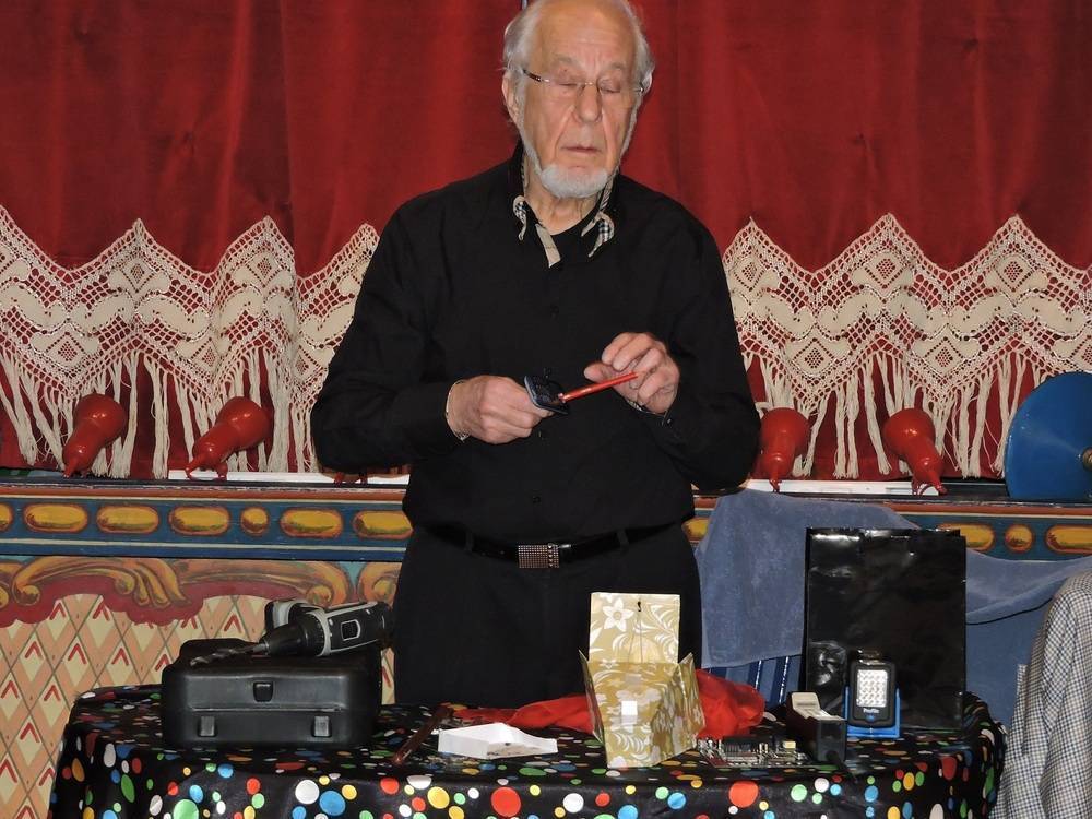 Joseph a reçu un joli cadeau à Noel et aimerait le tester. Notre dernier venu Julian est alors tout désigné pour venir faire le cobaye. Pour s’assurer de bien tout faire correctement, une fiche explicative est fournie. Tout d’abord, « verser du lait dans le Mug ». Ensuite « déposer une feuille sur celui-ci avant de retourner le tout sur la tête du spectateur ». Et oui mais tête en l’air, notre président a oublié de prendre une feuille avec lui, il décide alors d’utiliser la fiche explicative. Il suit les instructions jusqu’au moment où il s’aperçoit que … pour continuer le tour … ben il faudrait la suite des instructions, qui se trouvent sur la feuille sous le Mug. Même pas peur ! Il retire d’un coup sec la fiche explicative (vous auriez dû voir la tête de Julian !! ) et lit la suite des explications : « Ne surtout pas retirer la feuille qui est sous le Mug » … OUPS !!!! « Si vous avez malencontreusement retiré cette feuille, demandez au spectateur de rapidement boucher ses oreilles pour éviter les fuites éventuelles. » (On est alors tous heureux de ne plus être le « nouveau » :D) « Pour récupérer le lait il faut mettre un entonnoir sous le bras gauche et demander à un aide d’actionner le bras droit comme une pompe. » Se produit alors le miracle !! Le lait contenu dans le Mug passe par le cerveau (un bon nettoyage pour la nouvelle année ) , passe dans l’épaule, le bras et s’écoule via le coude en passant par l’entonnoir et tombe dans un grand verre. Oufff notre Julian est sauvé !!1 point