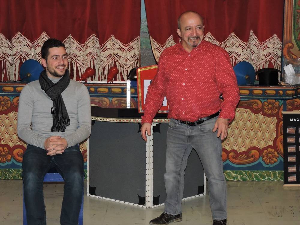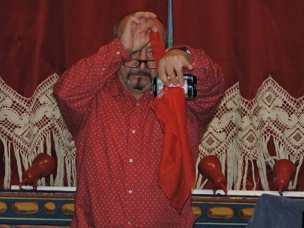 Quelle belle reprise pour cette nouvelle année 2017 !!! Apres les grandes retrouvailles autour d'un verre, il a fallu reprendre les bonnes habitudes et aller bosser un peu Eugène ouvre donc la séance avec une routine qui a donné des sueurs froides à notre président. Eugène nous présente son Gsm à travers lequel il fait passer un stylo. Mouiii … mais on se doute un peu là ! Nous voyant un peu perplexe il nous propose de faire de même avec un Gsm emprunté, un iPhone par exemple. Le président voulant à tout prix voir çà propose son propre téléphone … un peu trop enthousiaste !!! Eugene sort alors une belle perceuse et commence à le préparer. Au bruit que nous entendons, nous voyons Joseph devenir un peu palot, Eugene présente son meilleur sourire et Joseph boit pour oublier (dans ces cas-là on se dit que si l’année commence comme ça … elle risque d’être longue … très longue ). Puis à notre surprise générale le foulard traverse le téléphone de Joseph, qui le récupère en parfait état. Oufff !!1 point