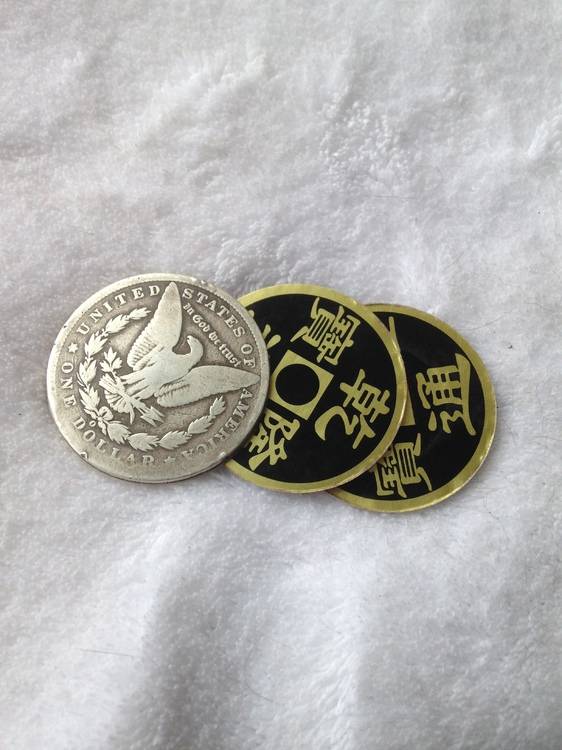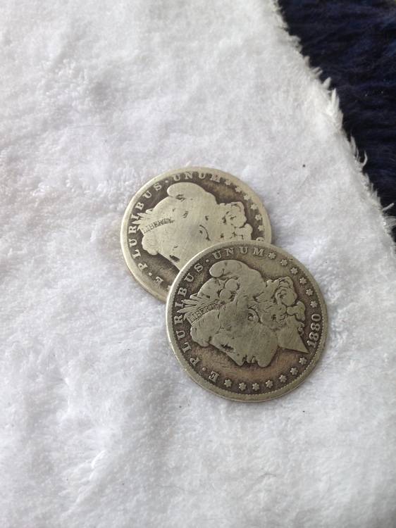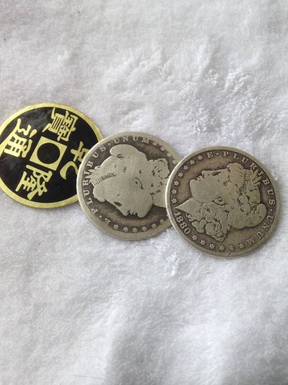 Bonjour, je vends une piece remarquable, très rare en version Morgan argent : une super triple coin double face de Wong. les pièces sont patinées , legerement softees, les éventuels impacts sont des traces du temps et non dus aux chutes, cela leur confère un aspect ancien sympa. Achetée au fabricant officiel Joe Mogar à 315 euros fdpi, cédée pour 245 euros fdpi en France... pas d'attente, pas de frais de douane, une belle affaire à saisir vite!1 point
