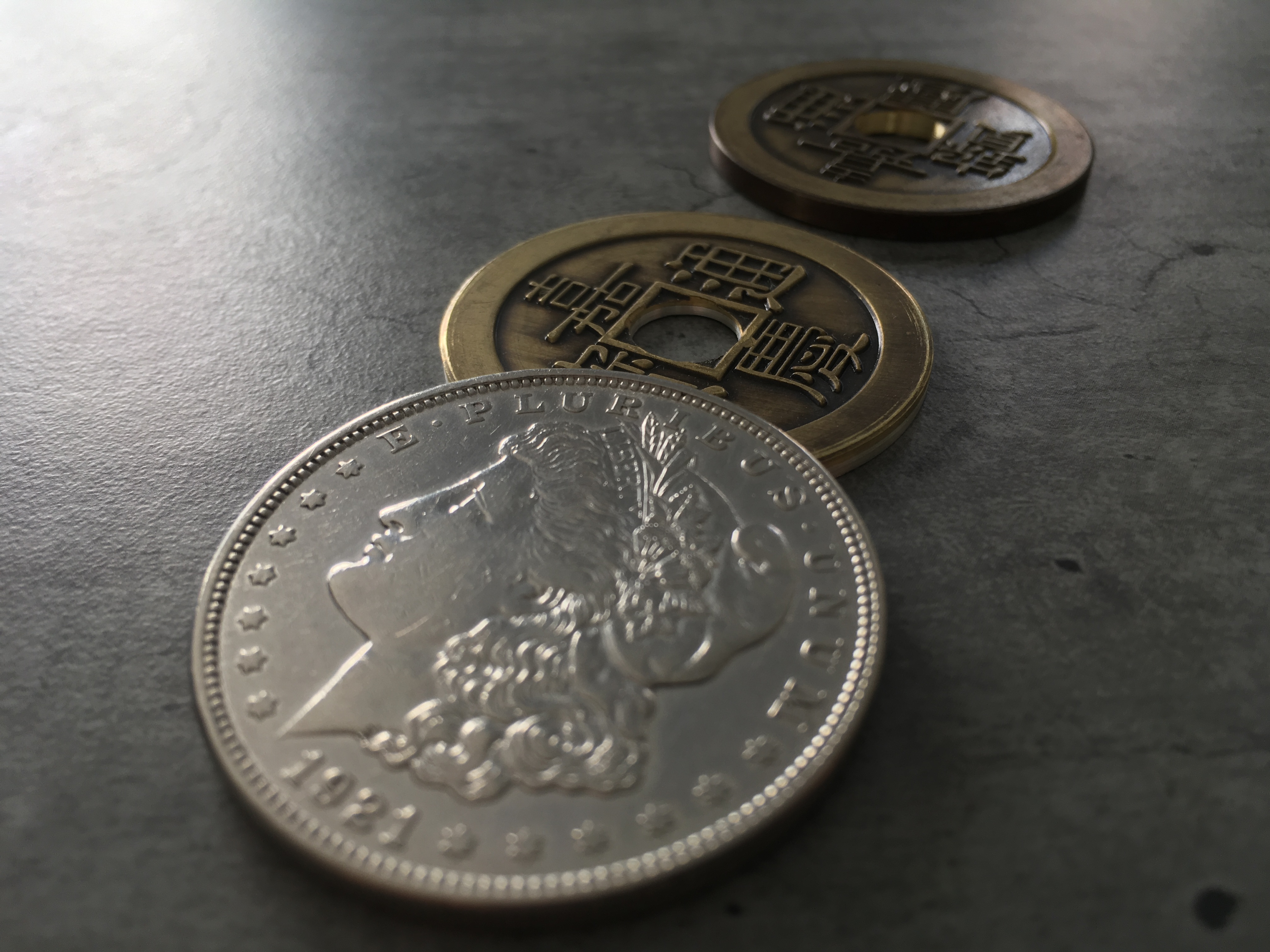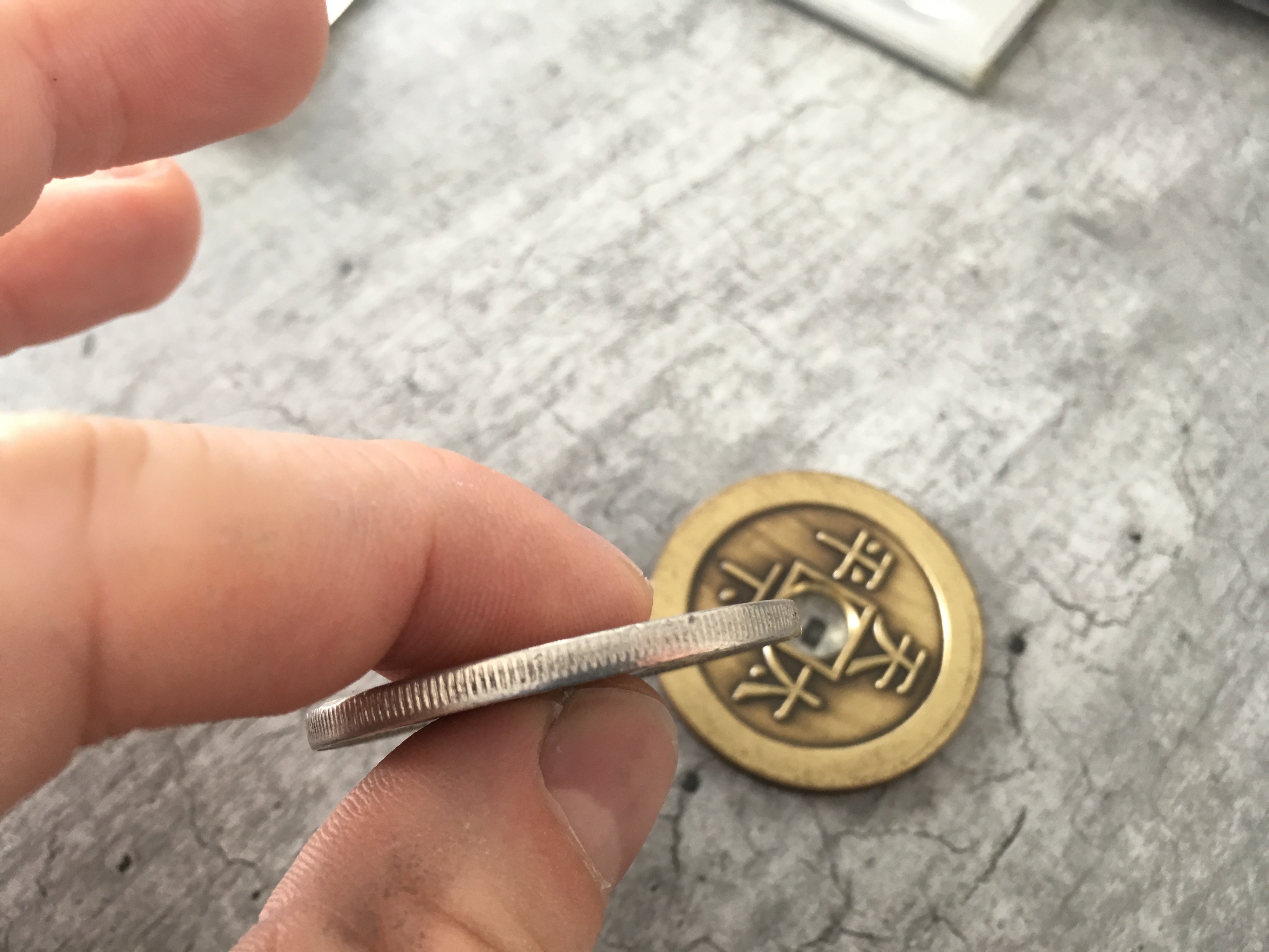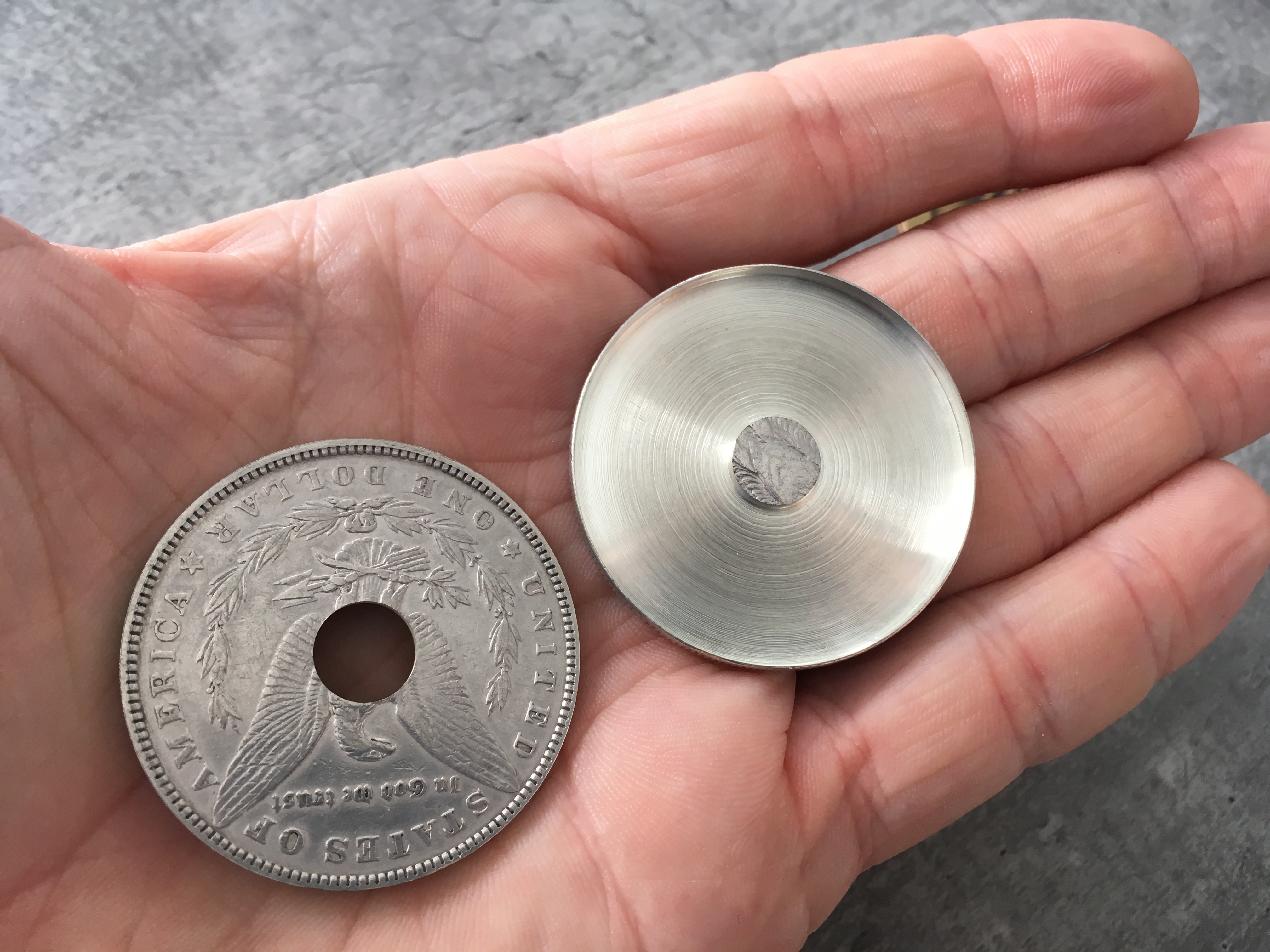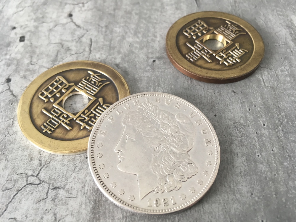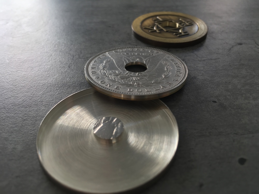 Bonjour, Je vends ce set composé de 3 pieces, cf photos : - Coquille spéciale en dollar Morgan 1921 - Insert troué double face Chinoise modèle Ultimate / Morgan 1921 - Piece chinoise Ultimate réduite se chaussant dans la coquille La qualité de réalisation de l'ensemble est remarquable et le complexe coquille + insert fait très exactement l'épaisseur d'un dollar morgan 1921 standard. C'est du quasi-indétectable, même pour une personne qui chercherait la chose visuellement. Le modèle de piece chinoise utilisée est également un superbe modèle très esthétique et réaliste. Je passe tout mon matos sur un autre modèle de pieces d'où la revente. Ce set permet de réaliser des effets de changement de couleur cleans et spectaculaires, le trou ajoutant une dimension d'impossibilité dans l'esprit du spectateur. Fabrication Van Dokkum Un très bel exemple de routine réalisable par Luis Piedrahita : Prix : 280€ FDPI1 point