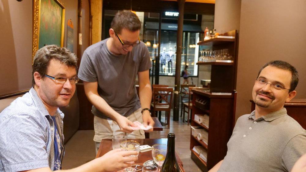 Franchement je ne sais pas comment tout cela a été possible alors que j'ai posté une annonce assez évasive seulement 3 jours avant la date proposé. Je nous vous dit pas les échanges de sms, de coups de fils et de mails entre le bureau de Nigloland pour mes dernières journées de boulot à l'hôtel, mon amie Bessie, Thomas, les deux Guillaume, Philip59, le rectorat de Reims (au passage, c'est bon, j'ai décroché le poste à temps plein que je voulais pour la rentrée !) et mes parents pour organiser le départ en retraite de mon père. J'étais presque au rythme d'un parisien donc une fois que tout coïncidait, j'étais content comme un gamin venant de résoudre un Rubik's cube et je me suis dit : mardi, la journée sera chargée mais je prendrais mon temps. J'ai tellement pris mon temps que j'en ai oublié un tas de choses . En tout cas merci à tous d'avoir répondu présent. Guillaume C et Thomas, j'étais très heureux de faire votre connaissance. Il faudra bien sûr qu'on se revoit avec un programme moins chargé pour prendre le temps de discuter et de se montrer des routines. Guillaume D et Philip59, j'étais très heureux de vous revoir. Notre prochaine rencontre est déjà certaine : on va goûter au pâté Ardennais tout en regardant la troisième vidéo d'Alex Elmsley que personne n'a jamais vue (private joke). Mais je pense qu'on se reverra quand même avant. D'ici là portez-vous bien les amis !2 points