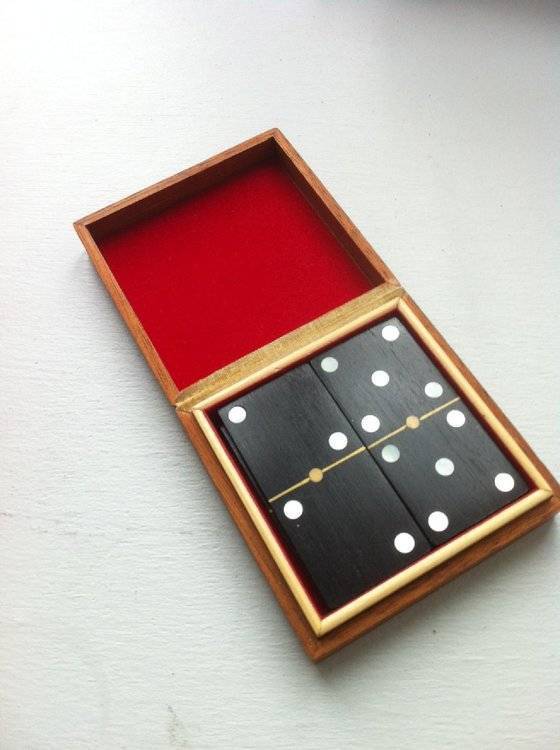 Je vends le magnifique effet Domino Transpo de François Danis. Il s'agit d'un matériel de qualité exceptionnelle avec des dominos en ébène et des points en nacre. Une des plus jolies réalisations de François. Le set est fourni avec plusieurs routines. Il permet notamment de réaliser la routine que Christian Chelman présente dans son Best-of Christian Chelman, édité en son temps par Joker Deluxe. Le set est numéroté et signé par François. 210€ à négocier.1 point