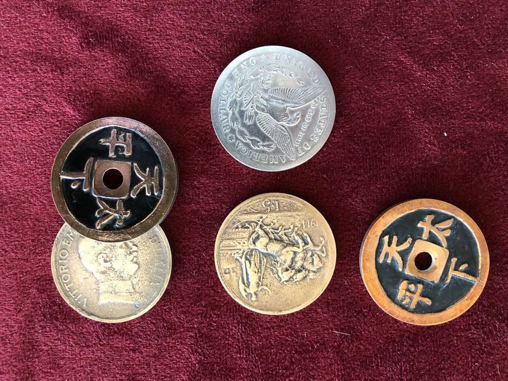 Demander a un magicien ce qu'il a dans ses poches,c'est comme demander a une nana ce qu'elle a dans son sac : C'est très perso,souvent,ça a l'air d'un sacré foutoir mais pourtant non,tout est bien rangé!!! De mon coté,le JOL No Palm portefeuille en small (ou le F1 portefeuille,c'est selon),un jeu de cartes,toujours arrangé(souvent en stack),un FP pour un change de billet. Parfois un set de pièces avec sh*ll. Pour le reste,j'ai dans mon piètre répertoire,quelques tours de mentalisme ou de pièces (hopping half par ex) faisables sans aucun gimmick spécial. Il y a quelques temps,j(avais toujours un stealth pen pour pratiquer la routine d'Oz Pearlman avec billet retrouvé dans le stylo. Pour résumer,un jeu de cartes,un fp et quelques pièces,un stylo. Pas besoin d'une valise pour ça1 point