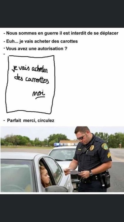 si le sujet ne t'intéresse pas tu n'es pas obligé d'intervenir. Moi ce n'est pas seulement de la famille ou des connaisances qui travaillent. En ce moment je suis sur le terrain pour assurer votre sécurité et cela m'empêche pas de discuter sur le forum. donc a priori je m'implique plutôt pas mal dans cette solidarité !! Et toi?1 point
