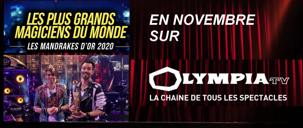 La bonne nouvelle ! On me souffle que nous pourrons découvrir la captation des Mandrakes d'Or 2020 très prochainement dés ce novembre et en avant première sur la chaine des Spectacles Vivants Olympia TV (avant diffusion pour décembre prochain sur C8) ! Enjoy ! La date et l'horaire arrivent trés vite !1 point