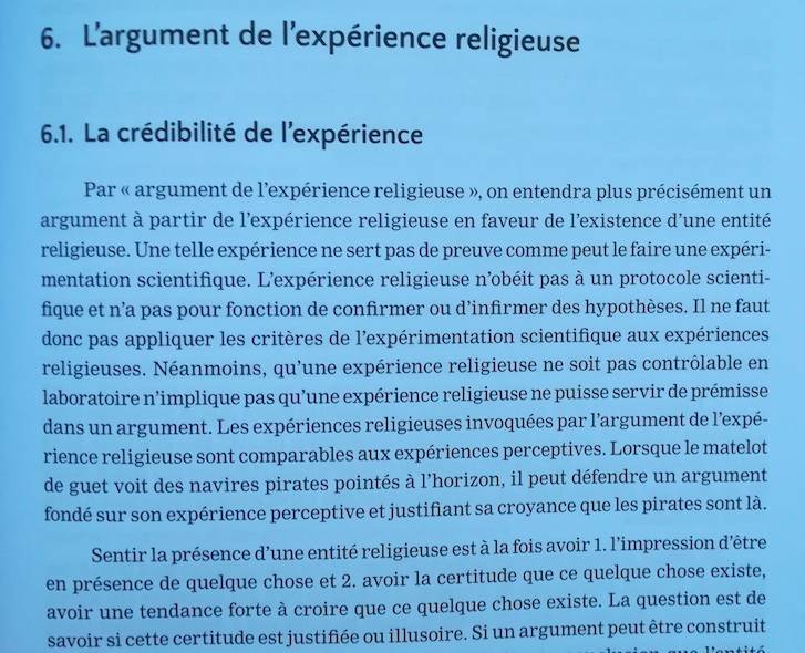 Je suis bien d'accord mais l'expérience religieuse dont parle l'auteur peut aussi être rapproché, selon moi, de l'expérience mystique (même si l'auteur considère que l'expérience mystique est une "sous-espèce" de l'expérience religieuse). Non pas besoin ! La question que tu abordes c'est, je pense, quelque chose comme : Peut-on considérer les expériences religieuses (ou les expériences mystiques) comme des expériences perceptives ? Assurément non (en tout cas pas au sens habituel de "perceptif" qui imposerait un accord intersubjectif). Si ces expériences n'appartiennent pas à un processus perceptif, peut-on les relier à un processus cognitif (comme certaines explications psychologiques rationalistes le suggèrent) ? L'auteur aborde cette question dans un article en open édition ci-dessous (quelle chance ! ) : Les expériences mystiques peuvent-elles appartenir à des processus cognitifs ?1 point