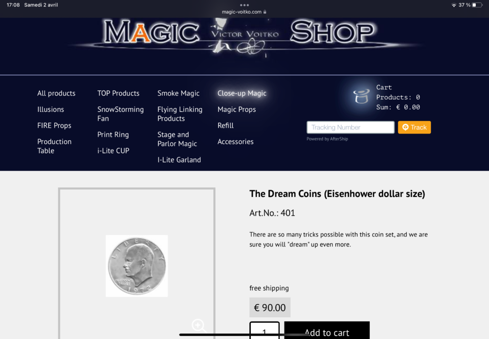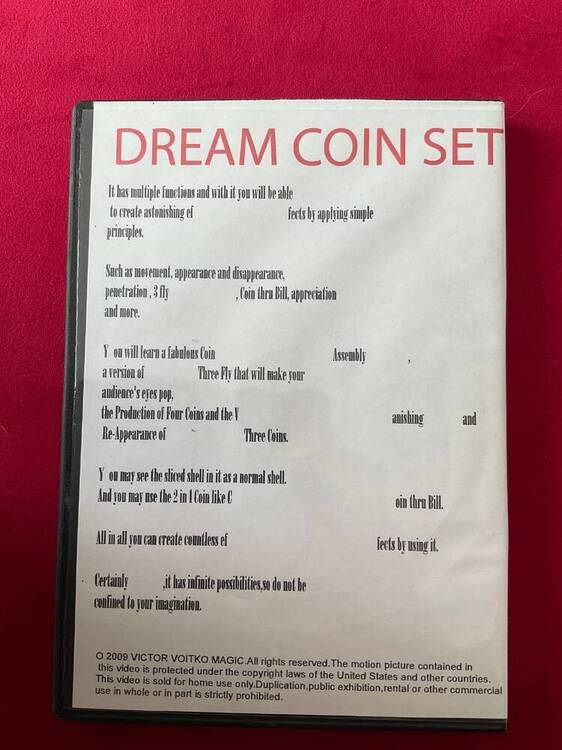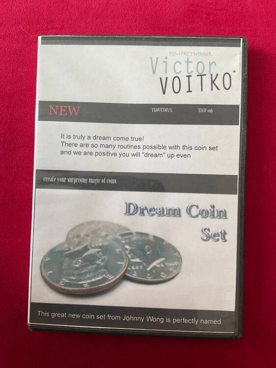 Je me sépare à regret de mon set Dream Coin set. Il s’agit de la version éditée par Viktor Voitko. En plus du DVD d’origine de Johnny Wong, vous avez le DVD de V. Voitko avec d’autres routines. La pièce gimmick en dollar Eisenhower est magnifiquement fabriquée. Beaucoup de routines sont possibles avec elle. Je m’en sépare à 45€ (la moitié de sa valeur + frais d’expédition.1 point