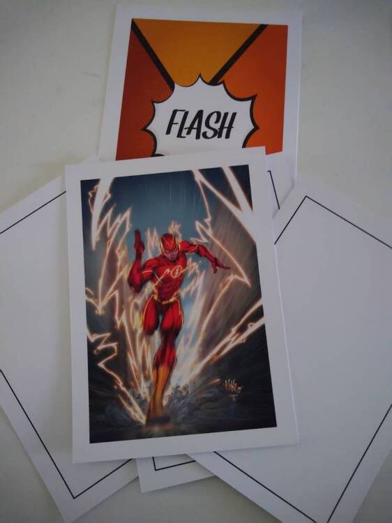 Voici un bonneteau à faire pour les enfants sur la thématique des super héros. Effet Le magicien sort d’une enveloppe ajourée 4 cartes jumbo. Trois d’entre elles sont blanches et la dernière représente le super héros « Flash ». L’enveloppe est mise de côté sur la table, elle vous servira à la fin. Commencez votre présentation en demandant aux enfants s’ils connaissent le super pouvoir de Flash. Ils vous répondront assurément qu’il a la possibilité de se déplacer à la vitesse de l’éclair et c’est ce que vous allez démontrer en effectuant un bonneteau en 3 phases où les enfants devront savoir où se trouve la carte « flash ». Malheureusement, malgré l’honnêteté des mouvements, « Flash » se déplace trop vite et n’est jamais là où on pense... Au final, « Flash » disparaîtra complètement des cartes en main pour réapparaître dans l l‘enveloppe Note : les cartes font 15 x 21 centimètres Facile à faire Prix : 20 euros + 2.5 euros (envoi en lettre)1 point