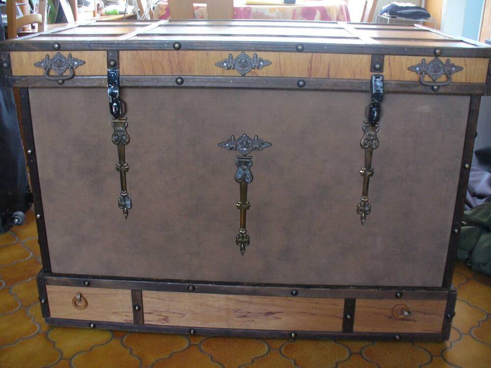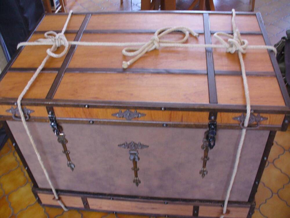 Magnifique Malle des indes type corsaires Décorations soignées , recouverte tissu imitation toile ancienne . Entièrement démontable ( montage 10 minutes max) En housses de transport Systeme par l'arrière Dimension 110 X 70 X h 75 Tres solide , fabrication artisanale specialiste. Elle peut etre totalement controlée par un spectateur de tres pres . Vendue COMPLETE avec petit coffre à accessoire + tissu Or et armature + Sac houdini + cordes pour une présentation traditionnelle , permettant d'ailleurs change de costume En PARFAIT ETAT !!! et un visuel de qualité 'voir photos)1 point