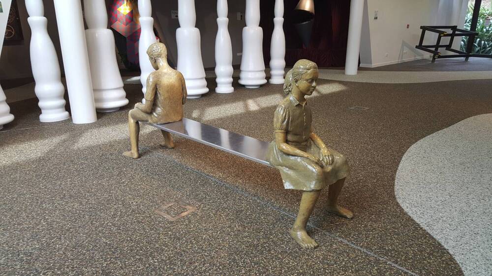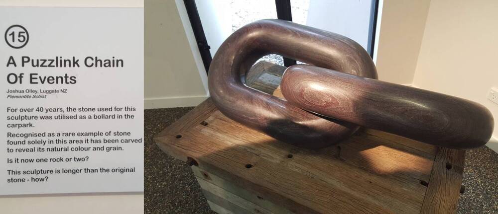 En faisant le tri de mes photos (c'est incroyable le nombre de photos que l'on accumule avec la technologie moderne !), j'ai retrouvé des photos prises au Puzzling World à Wanaka en Nouvelle-Zélande. En voici quelques-unes : Deux maillons sculptés dans un bloc de pierre : Un grand classique, en grandeur nature : Un autre classique, toujours en grandeur nature : Un objet "impossible" : Une chambre Ames ... ... où l'on peut se voir grâce à un système vidéo en différé : L'un des nombreux objets "absurdes" présentés dans ce magnifique musée : Bob4 points