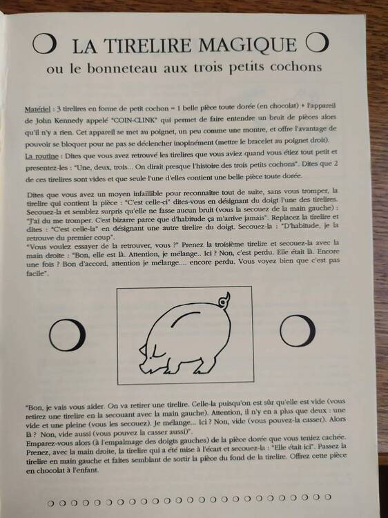 7 photos couleur montre les manipulations nécessaires au magicien. Le texte accompagnant est en allemand. Pour avoir une information plus complète, 1 page au moins, format 21x29,7, doit être traduite au moyen de deepl.com par exemple.