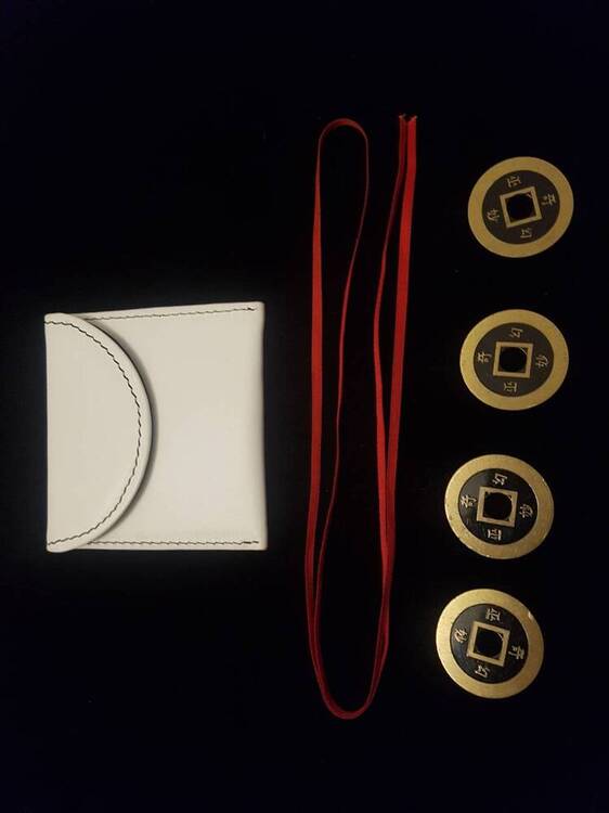 Hello! Je vends 4 pièces chinoises de taille demi-dollars extra fine + une élégante pochette en cuir,sa fermeture est à pression. Je vous fourni un petit cordeau fin pour réaliser le charming chinese chalenge. Je peux même vous expliquer la routine au besoin. 24 euros FDPI.