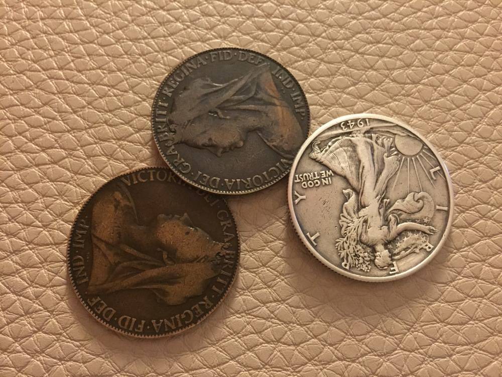 vends copper silver kennedy/penny ( coté aigle)avec un penny et une kennedy 20 EUROS Origine inconnue mais tres reussi