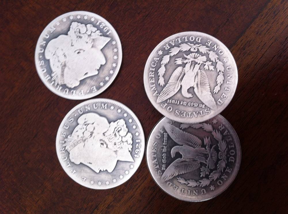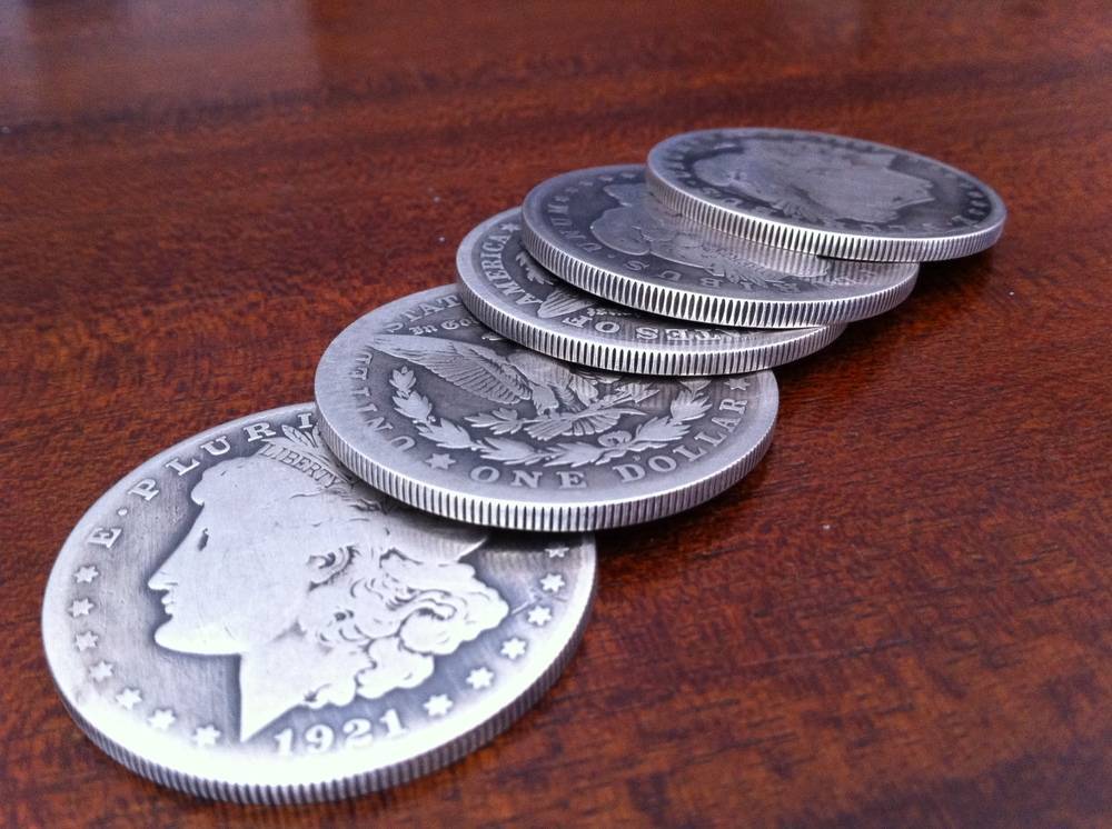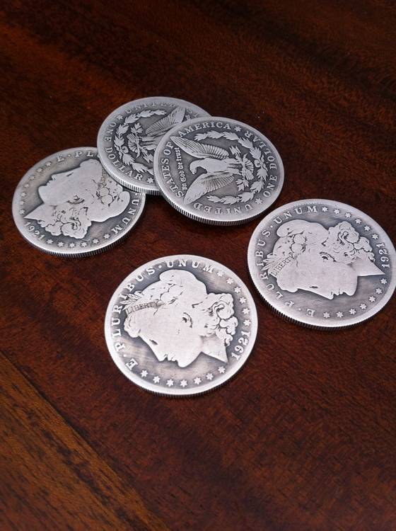 dans un but financier je pense que s equiper en demi dollar argent est la base. apres si le plaisir est la ,avoir un set en dollar est top. de plus , en close up ou impromptu , j entend par la entre pote, sortir qq demi dollar de sa poche ......ok,des grosses pieces,ca fait un poil preparée pour l amateur que je suis.