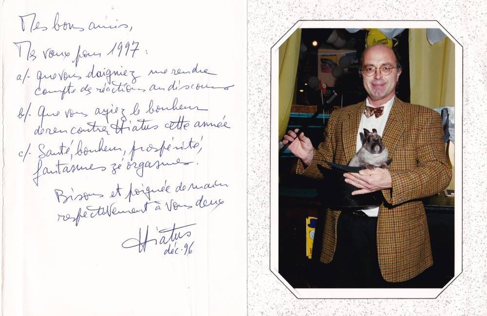 Un jour j'ai mis en relation un certain Hiatus, Georges LLIATAS et un certain Domenjax, Jean Louis Domenjo qui pratiquait la magie à Perpignan mais qui ne se connaissaient pas ....
