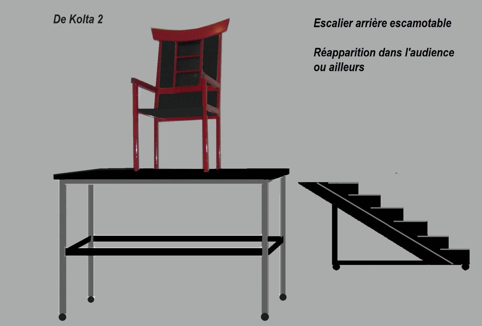 Les Jambes de Marvey tournent autour de lui pour venir ensuite le reconstituer, dans le numéro de Marcel, un vélo traverse la scène avec des jambes déjà séparée du corps