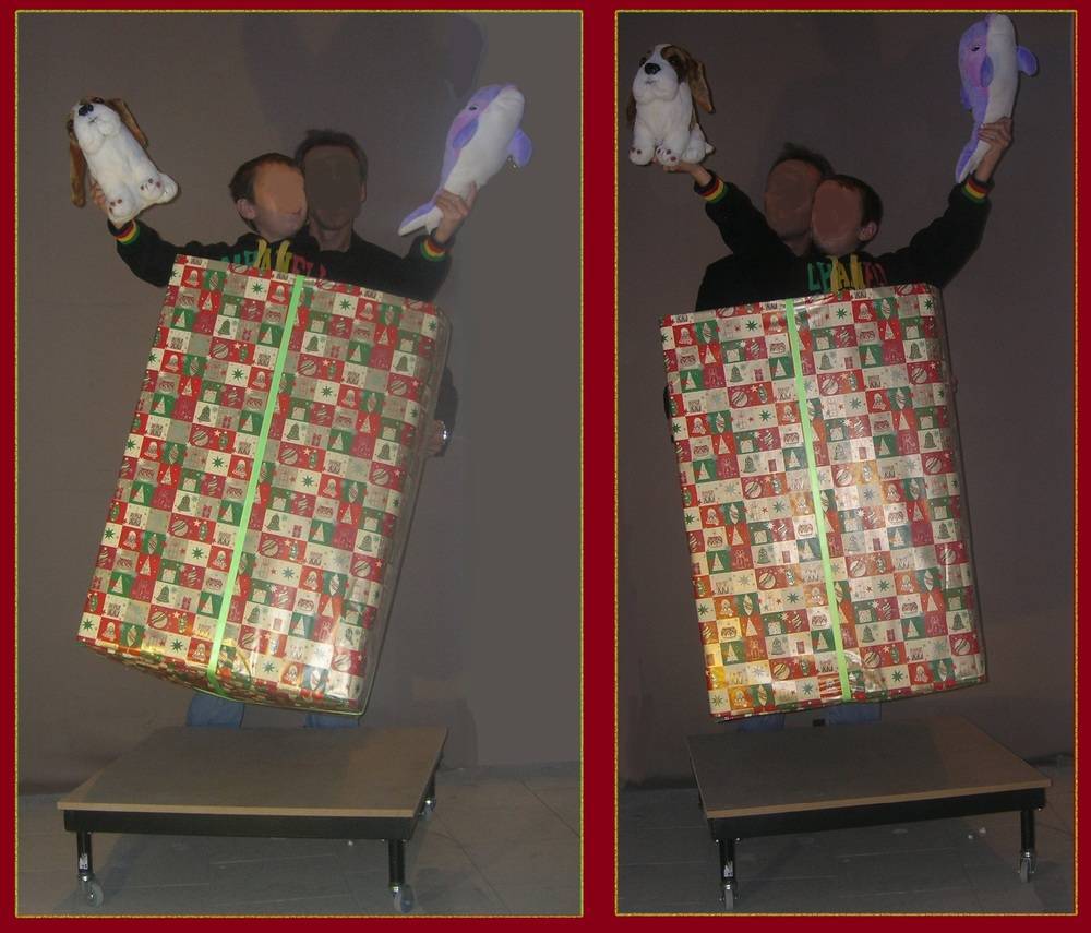 Peter Marvey se coupe en 2 "à vue" si on peut appeler cela comme ça, alors que dans le numéro de Marcel, ce n'est pas le cas