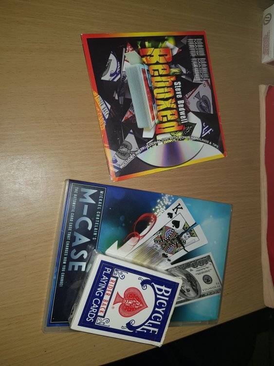 Bonjours je met un lot en vente comprenant plusieurs tours et gimmicks. .M-Case de Michael Châtelain(neuf) .Reboxed de Mark Mason(neuf) .PRO-FLITE de Nicholas Einhorn(neuf) .Instant v2 Radio de chez Magicgadgets(neuf) .Error 404 des French Twins(neuf) .Steam d'Ali Nouira(bon état) .The WEB de Jim Pace's(bon état) .The cigarette through card(neuf) .Kinetic de Tom Wright(bon état) Je laisse le tout à 70 euros fdpi et pour achat du lot je rajoute flow de Dan Hauss(1 flacon sur 2 ouvert) ainsi qu'un petit cube en laiton avec sa routine.