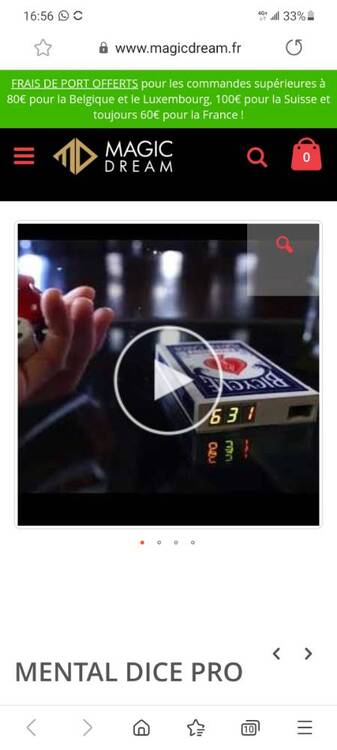 Avec Mental Dice, soyez serein pour votre prochaine routine de mentalisme ! Très fiable, vous pourrez dérouler votre routine avec beaucoup de confiance en vous ! Effet : Vous présentez 3 dés à un spectateur qui en choisi un à votre insu. Non seulement vous allez être en mesure de révéler quelle est la couleur du dé choisi parmi les 3 (rouge, blanc ou noir) mais aussi sur quelle position de 1 à 6 il se trouve !! Et ce n'est pas fini. Vous pouvez, grâce à Mental Dice, savoir exactement dans quelle position sont tous les dés, qu'ils soient en main du spectateur, sous un gobelet et même dans une autre pièce ! L'option du vibreur permet d'avoir l'information les yeux bandes. L'application permet également d'avoir ur retour d'information mais également configurer la puissance du vibreur et autre... Compatible avec la Turner watch, Voilà, TAP, etc... Ce produit est une pure merveille et surtout évolutif! Prix du set avec le vibreur: 270€ fdpi