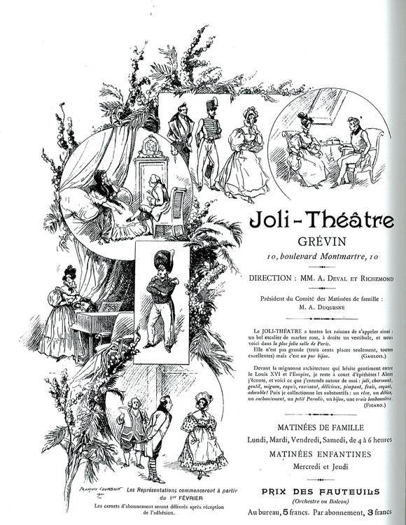 Désolé mais je croyais bien faire... et que ce pourrait-être plus facile car tout est mélangé entre l'histoire de Marcalbert et celle du théâtre il faut dépouiller chaque page pour ces deux sujets pour retrouver le fil de ces 2 thèmes. Cela rend la lecture difficile. Par contre ainsi qu'a pu le rectifier R. Baschet en 1982 dans son livre grâce à l'étude des archives du musée, le musée ne fut inauguré que le 7 juin 1882 et non le 10 janvier comme l'écrivait C. Cézan en 1947. Concernant le surnom du théâtre, si deux émiments historiens, MM. Voignier et Morax, le disent alors je m'incline. Oui d'accord les deux salles sont construites au même endroit, l'une remplaçant l'autre. Sait on qui était ce professeur Marga visible sur l'affiche de Cheret ? -