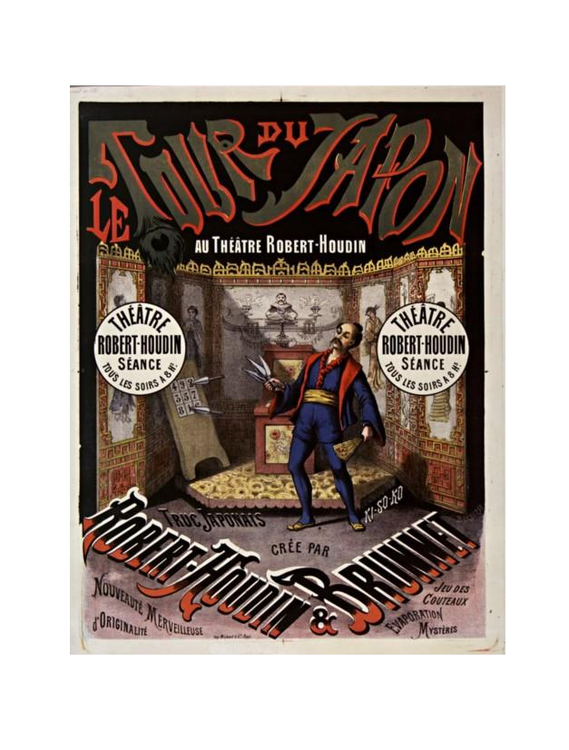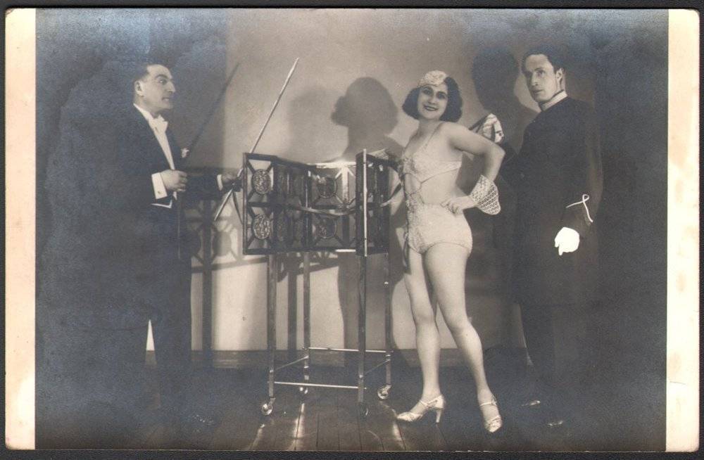 Marcalbert présentait aussi dans cette séance une grande lanterne noire qu’il montait sur scène garnie de papier de soie blanc. Il y plaçait une lumière pour monter qu’elle était toujours vide puis aussitôt apparaissait à l'intérieur une femme qui déchirait le papier.