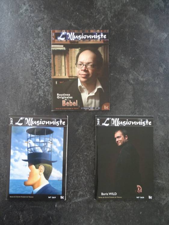 Bonjour, Je vends les 3 numéros, cités dans le titre, de la revue L'Illusionniste. Revues en très bon état (photo ci-dessous. 8 euros l'unité (sans les frais de port) Paiement via Paypal souhaité Possibilité de remise en main propre sur Paris.