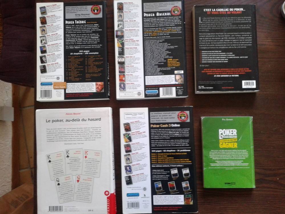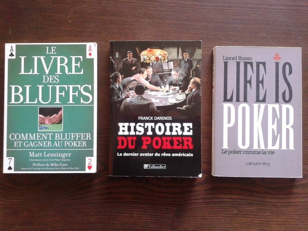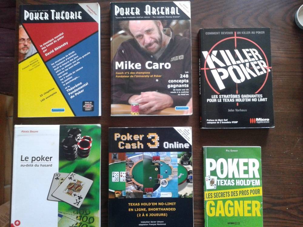 Baisse des prix, livres à vendre à l'unité ou en lot: - "Poker Texas Hold'em, les secrets des pros pour gagner" de Phil Garnier = 5€ - "Life is poker" de Lionel Rosso = 7€ - "Histoire du poker, le dernier avatar du rêve américain" de Franck Daninos=10€ - "Le livre des bluffs" de Matt Lessinger = 15€ - "Killer poker" de John Vorhaus = 10€ - "Poker Arsenal" de Mike Caro = 12€ (petit prix car surligné et annoté) - "Poker Théorie" de David Sklansky = 18€ - "Poker cash 3 online" de Dan Harrington et Bill Robertie = 20€ - "Le poker, au delà du hasard" d' Alexis Beuve = 35€ Tous les livres sont en très bon état, pour les frais d'envoi c'est à voir, certains livres sont gros et lourds mais pour qui prend le lot, les frais de port sont offerts ! Le lot des 9 livres, frais de port inclus = 120 € !