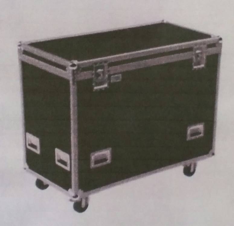 Article totalement neuf. Flight Case pour professionnels du spectacle. Malle Série Classique. Dimensions extérieures : Hauteur 1m x Largeur 1,20m x Profondeur 60cm. Dimensions intérieures : Hauteur 82cm x Largeur 1,17m x Profondeur 57cm. Couvercle sur charnière. Panneau de bouleau filmé 9mm. 2 Fermoirs encastrés à pavillon cadenassables. 8 Poignées encastrées à ressort. 4 Roulettes D100 dont 2 à freins sur platines. Capitonnage total intérieur en Mousse Rainurée. Volume : 550 litres. Poids : 41 kg. Couleur Marron foncé. Prix : 300 Euros