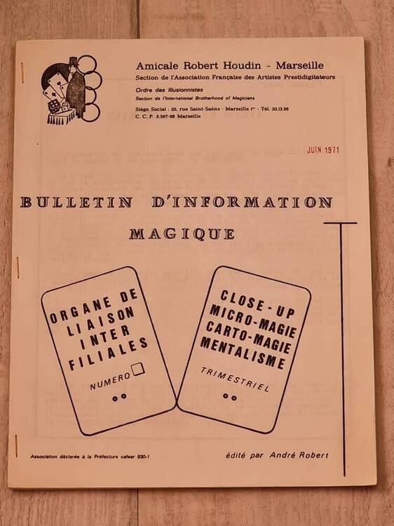 Lot de 30 Revues de Magie Collectors : - 26 Revues du Journal de Prestidigitation de l’A.F.A.P. de Paris (de 1966 à 1969). - 3 Bulletins d’info Magique de l’Amicale Robert Houdin de Marseille (de 1970 et 1971). - 1 Revue « L’illusionniste ». Vendues 60€ (Frais de port inclus).