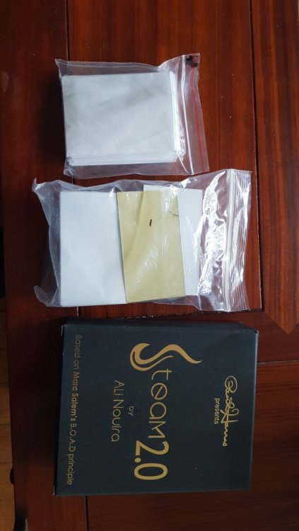 Avec "Steam 2.0" vous connaîtrez instantanément ce qui a été secrètement écrit sur une carte de visite vierge, alors que cette dernière est retournée, dans la main du spectateur, ou sous plusieurs mains, ou même sous un livre ! Vous n’avez pas à toucher la carte, ni même à la voir … et pourtant vous saurez exactement ce que la personne a dessiné ! Vous pouvez même vous retourner pendant que le spectateur écrit son mot et le recouvre avec sa main (ou avec ce qu’il souhaite) ou fermer les yeux ou tout simplement quitter la pièce. "Steam 2.0" vous offre plein de nouvelles présentations. - Très facile à faire "Steam 2.0" est en fait automatique - Pas de copie carbone - Pas d’électronique - Le dos des cartes de visite spécial reste totalement blanc après l’écriture - Personne ne peut voir à travers la carte - Se prépare en 5 secondes - Adapté à votre propre Sharpie - Tout est contenu dans le matériel - Rien à charger, échanger ou dont il faut se débarrasser - Tout peut être examiné utilisé 3 fois, encore possible de faire une centaine de tours Prix : 30€