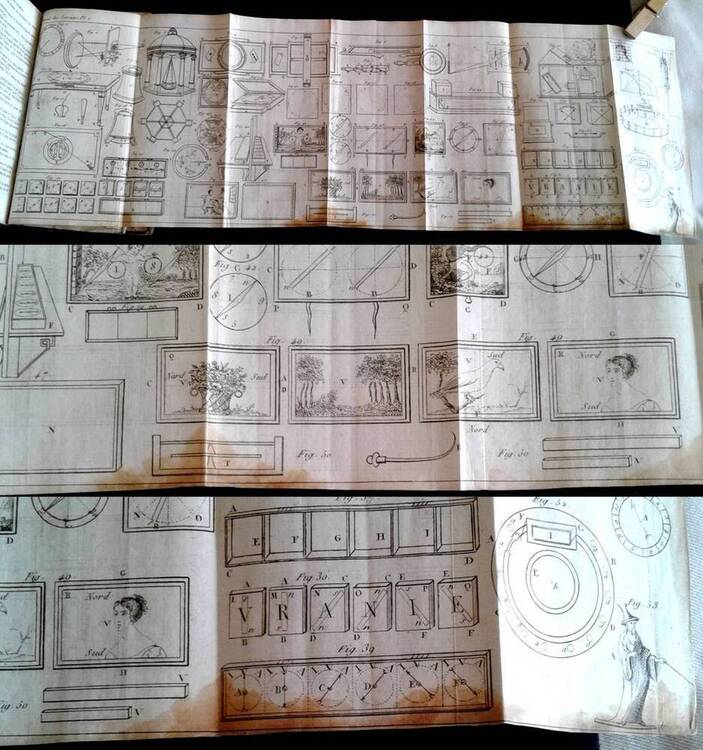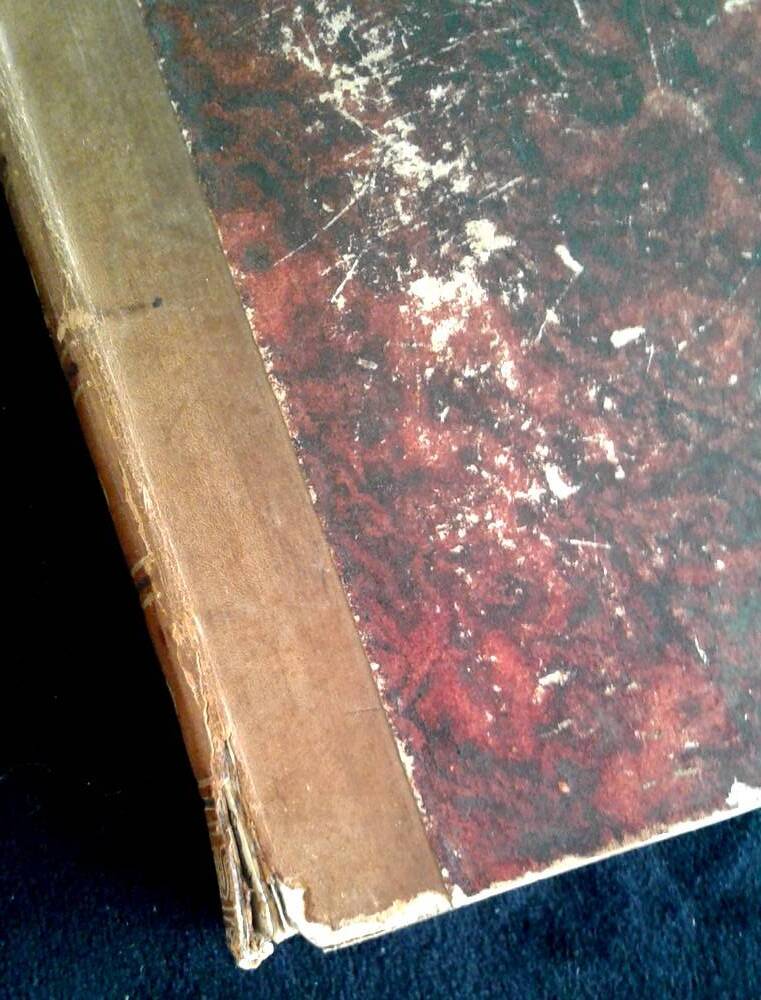 1° et 4éme plat usagé avec quelque taches, coiffe inférieur arrière arasée, trace d'humidité sur le bas des 2 premières pages, trace en demi-cercle sur le milieu du haut des 12 premières pages, un petit trou dans le centre de la première planche de dessin.