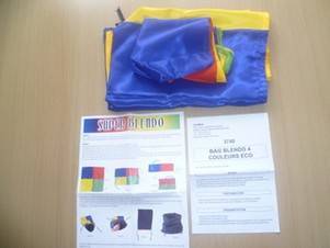Salut à Tous Vds super Blendo Le magicien présente 4 foulards de couleurs différentes. Il les place tous les 4 à l'intérieur d'un sac foncé. Tout à coup, il provoque une petite secousse sur le sac, et celui-ci se transforme instantanément en un foulard géant divisé en quatre couleurs : les mêmes que celles des foulards introduits au préalable ! Ce sac caméléon à pris totalement l'apparence de ce dont on à introduit à son intérieur ! Magique, visuel et efficace Facile à faire Belle qualité de foulards Les petits foulards mesurent : 33 cm de côté Le blendo final mesure : 73 cm de côté NEUF Jamais Servi !!!! Prix 20 € Seulement