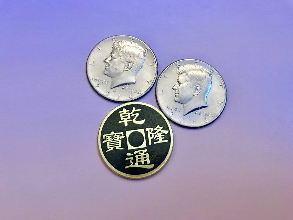 Effectivement y'a pas de bonne ou de mauvaise pièces. En revanche y'en a qui te correspondent et d'autre beaucoup moin. Il faut juste les essayer pour s'en rendre compte. J'ai commencé la magie quand j'étais gamin, à l'époque j'utilisais tout se que j'avais dans mon porte monnaie. Je présentais mes routines avec des 5 francs en argent. Apres j'ai laisser de côté la magie un moment, et quand j'y suis revenus les francs avais foutu le camps depuis bien longtemps et les euros ne me plaisait pas du tout. J'ai essayé les 5 et 10€ argent et j'ai pas trouvé ca bien terrible.... déjà la tranche est lisse, et elle sont beaucoup trop légère à mon goût. du coup j'ai acheté une poignée de demi dollars, et puis j'ai essayé tout un tas de truc. Justement c'est bon pour s'entraîner de changer régulièrement de taille. Pour sortir un peut de ma "zone de confort", j'ai travaillé avec des pièces beaucoup trop grande, trop lourde ou au contraire minuscule. -