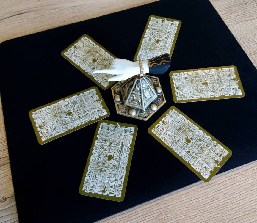 Inspiration Égyptienne pour cet effet collector. Une carte (ou un objet) est choisie, le spectateur se voit remettre la boîte avec la main de Cléopâtre enfermée. La main est ensuite placée sur la pyramide et mise en mouvement. Elle tourne puis peu à peu s'arrête lentement et pointe vers une carte, la carte choisie sans aucune interaction de la part du magicien. Le matériel comprend la pyramide, la main et son sarcophage, un jeu de tarot Égyptien format mini adapté pour cette prestation en close-up. 260€ FDPI