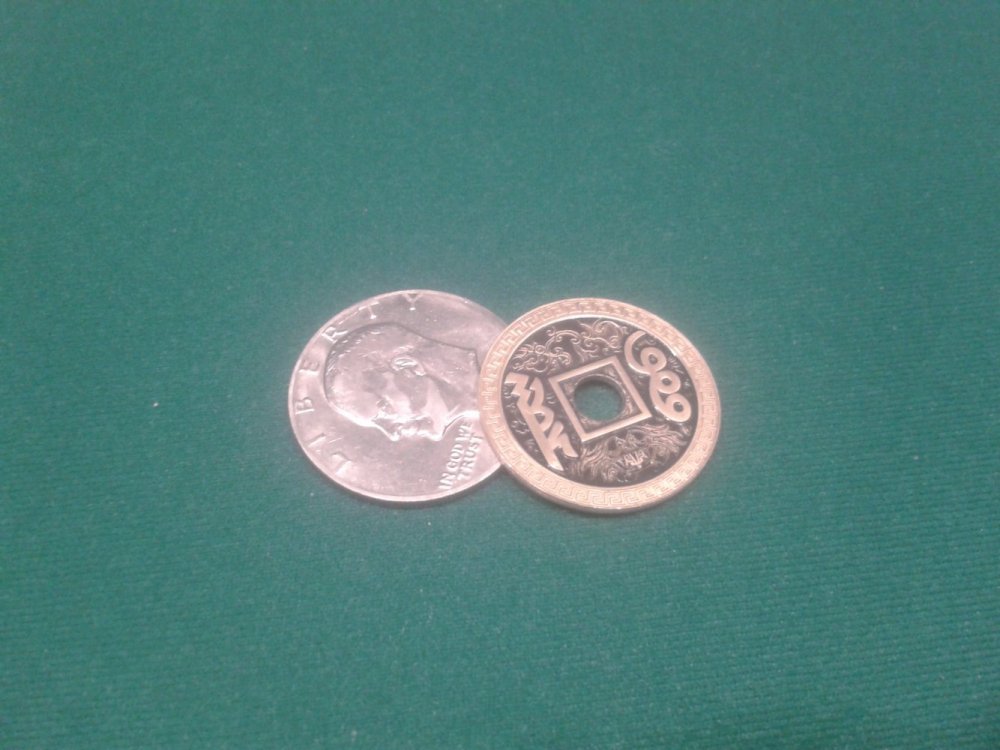 Bonjour voici un superbe tour (rare)neuf dvd+gimmick. 30 Euros FDPI (ferme). L’effet peut être fait avec la plupart des pièces de monnaie. Il y a différent gimmicks pour aussi bien faire ce tour avec des yen japonais que des dollar américain bien sur les euros 2 Euros 1 euros 50 Cts ect.. Voici un lien vidéo: