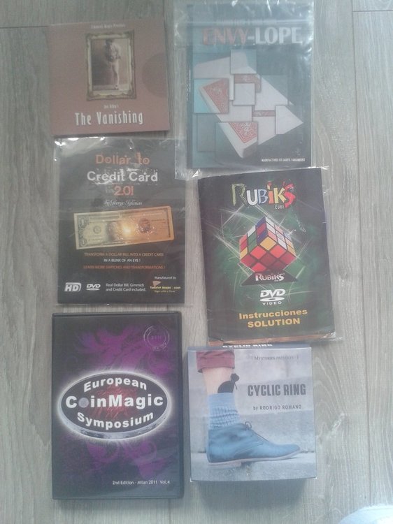 Bonjour voici les liens vidéos des tours +dvd que je vends tout est (neuf) Veuillez me contacter pour plus d'informations. Cycling ring By Rodrigo Romano: Dollar to Credit Card ver.2 by George Iglesias: The Magic Cube (Gimmicks and dvd by Gustavo Raley: The Magic Cube (Gimmicks and dvd) by Gustavo Raley The Vanishing by Jon Allen: Paul Harris Presents - ENVY-LOPE by Brandon David and Chris Turchi: European Coinmagic Symposium critique Vol. 4