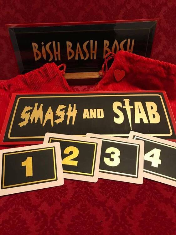 Russian Roulette Combo de Five of Hearths (Colin Rose) Smash and Stab + Bish Bash Bosh complet Taille : Jumbo - Sans gobelets Descriptif : 250 euros Port en supplément -