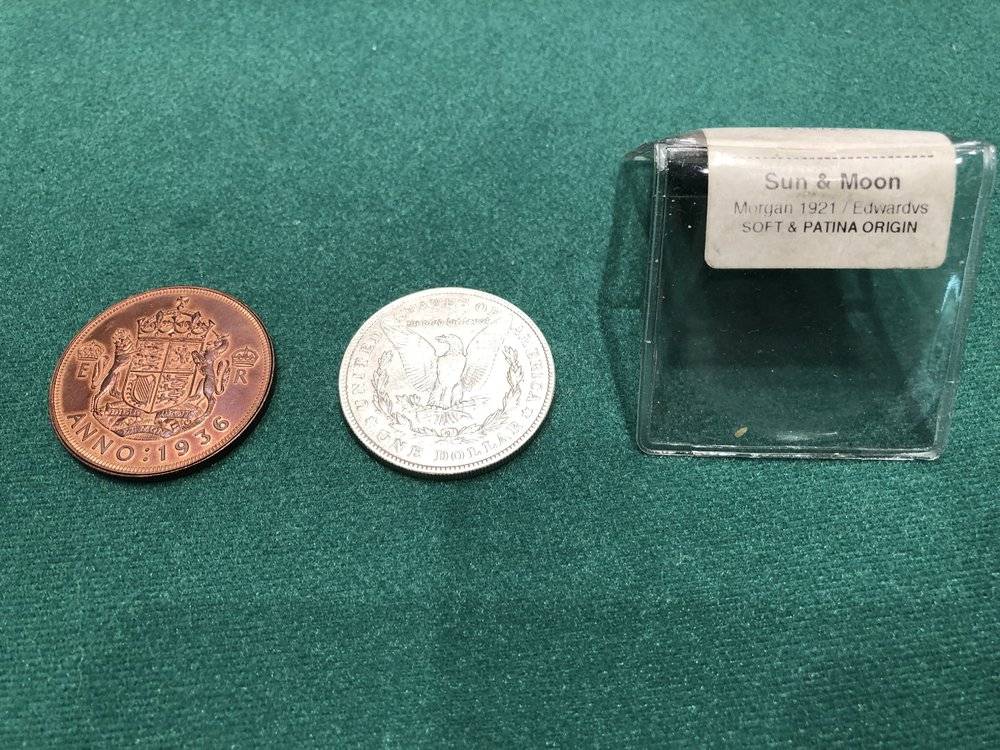 Sur deuxième photo , on voit la face coté insert de la piece en cuivre (en fait c'est une sun and moon cuivre face et dos avec demi dollar a l'intérieur )