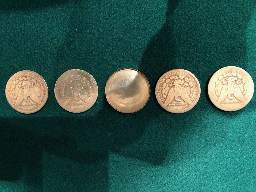 Appelée TTGF-O plus expanded sheel en walking liberty autrement dit une oxf (pièce flipper + coquille ) avec en plus une autre coquille , soit la possibilité de montrer 4 pièces en une. Le tout avec système aimanté permettant d'être clean et de lancer en l'air la pièce à chaque disparition. Luis piedrahitas l'utilise dans un de ces passages TV... Seul Todd Lassen fabrique cette pièce et à été vendue à 4 exemplaires dans le monde. C'est l'occasion pour les collectionneurs d'avoir une pièce unique . signature LASSEN sur la coquille signe distinctif d'authenticité . Propositions en mp.