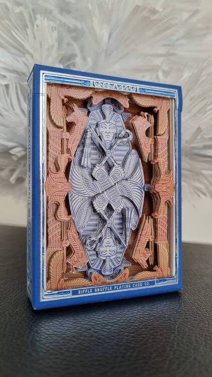 Pour fêter Noël voici mon dernier jeu terminé. Cette œuvre à été créée sur le magnifique jeu Grateful Dead de Theory11. Un recto verso avec un très gros travail sur le dos des cartes.