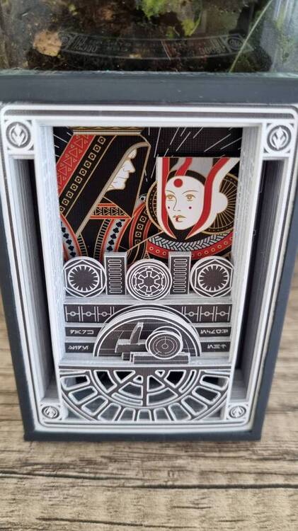Allez, comme je suis en vacances, j'ai le temps Voici ma dernière création avec le magnifique jeu Mandalorian de Theory 11. Tout comme le James Bond et le Star Wars blanc, si vous êtes intéressés contactez moi -
