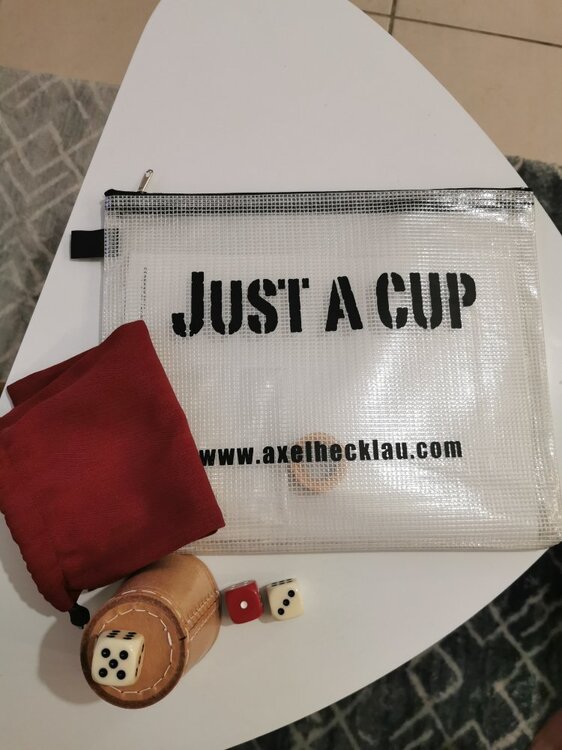 Bonjour, Je me sépare de Just a cup d'Axel Hecklau, Directement acheté sur son site, le produit est comme neuf. Vous recevrez les 3 dés (dont un truqué), le gobelet, le petit sac, le gimmick, les instructions sur papier et en vidéo, les droits pour les représentations et également un neck cracker qu'il inclut dans sa routine principale. Prix : 110 euros FDPI Je me tiens à disposition pour plus de photos ou informations. Pablo