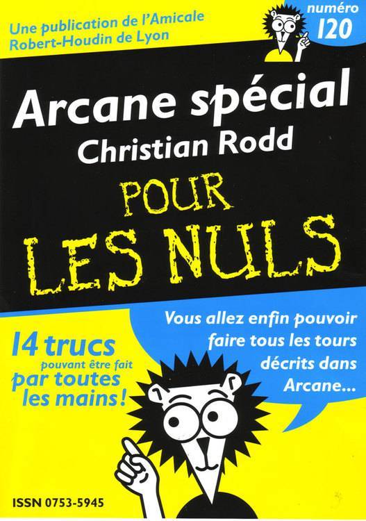 Surprise Arcane n°120 m'arrive hier soir au débotté -je ne me couche jamais avec mes bottes- sauf s'il "elle" a dit oui et avant qu'elle ne change d'avis! Et là je découvre la revue que j'ai toujoursd souhaitée : une couverture hyper drôle (cf photo) 33 pages dont 25 sont des descrsptions de tours sans blabla inutile, précises intelligentes, bourrées de références non auto-laudatives!! Sur ces 25 pages, 174 illustrations pour la plupart des photos vues de l'artiste -c'est parfois vous- (on en trouve même chez Joseph, non?) et des dessins super précis, à tomber, vous dis-je! et gna pas que des tours de cartes! anneaux chi chi, cordes Blumoreptiliennes- , la production au cornet de lait (elle vaut plus que le prix dérisoire de l'abonnemlent), une tite merveille avec des zampoules électriques perdues entre les inévitables troutines de cartes (mais ici elles sont bonnes, plein de goodies à copier , coller découper et de ptits gags sympas à faire avec son front ou ...son nez (les petist gags de la narine?). J'ai fait plein d'erreurs parce que taper en sautant de joie c pas fossile! On s'abonne pour 2006 pour 50 euros,(4numéros)a cette revue qui est l'émanation de la chaleureus et gouteuse magie de l'Amicale Robert-Houdin de Lyon, on appelle legestionnaire >Michel au 03 85 30 43 66, on m'envoie fleurs et spécialités gastronomique à l'adresse indiquée sur mon site!![]ici[/url] On élit Jean Yves Prost directeur honoris Causa de l'Illegal Magic club et onvient lui manger le bernachon dans la main! arcane