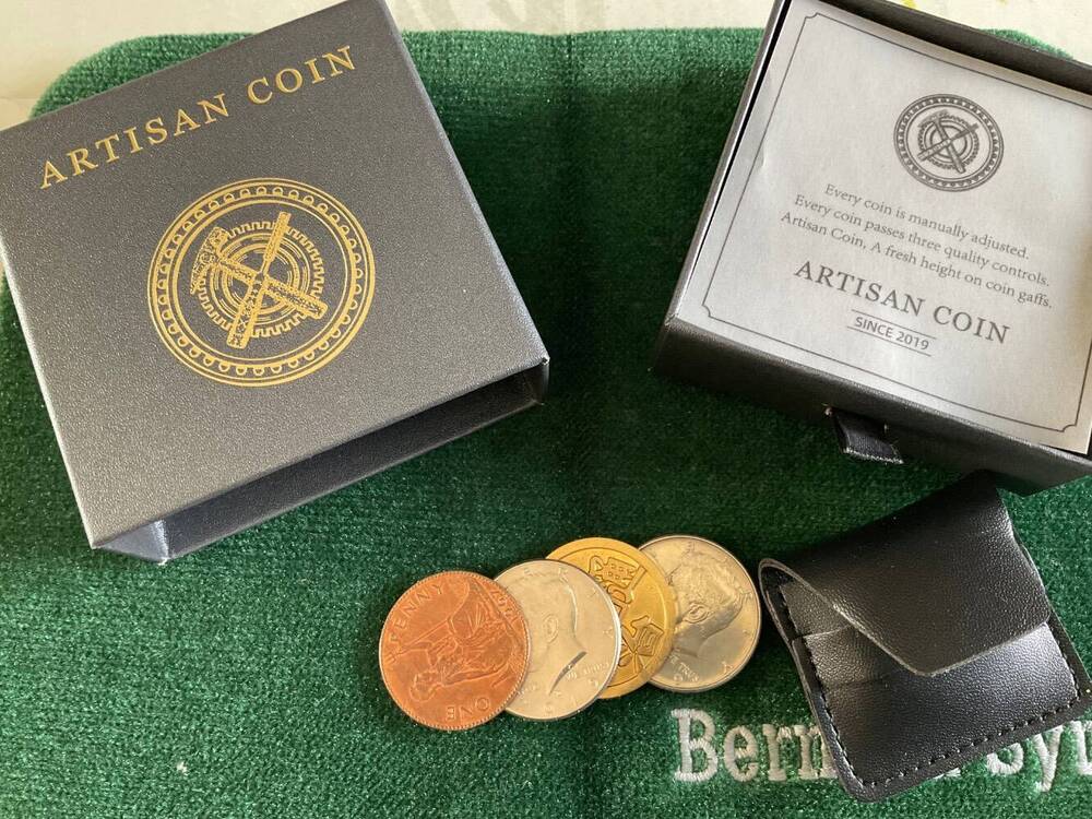 Je me sépare de mon set C.S.B. de chez Artisan Coin dans la HD series. Acheté plus de 60 $ avec les frais de port, je le cède 40 € fdpi. La pièce gimmick pour la routine CSB l'une des inventions les plus ingénieuses en matière de tours de magie. C'est aussi l'un des effets de transposition les plus puissants en magie des pièces. Quelle que soit votre connaissance des tours de magie et des tours de magie des pièces, une bonne routine de CSB vous fera tourner la tête en un instant. Même si vous ouvrez et exposez le secret sous vos yeux, vous serez certainement stupéfait par sa simplicité, puis vous le réaliserez soudainement et applaudirez avec admiration. Coquille Artisan Demi-Dollar Expanded